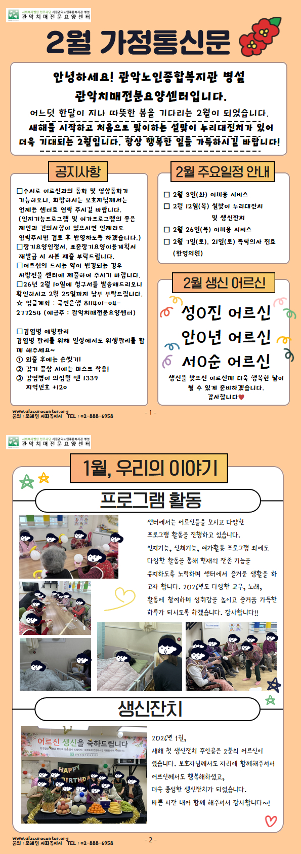 관악치매전문요양센터 2026년 2월 가정통신문