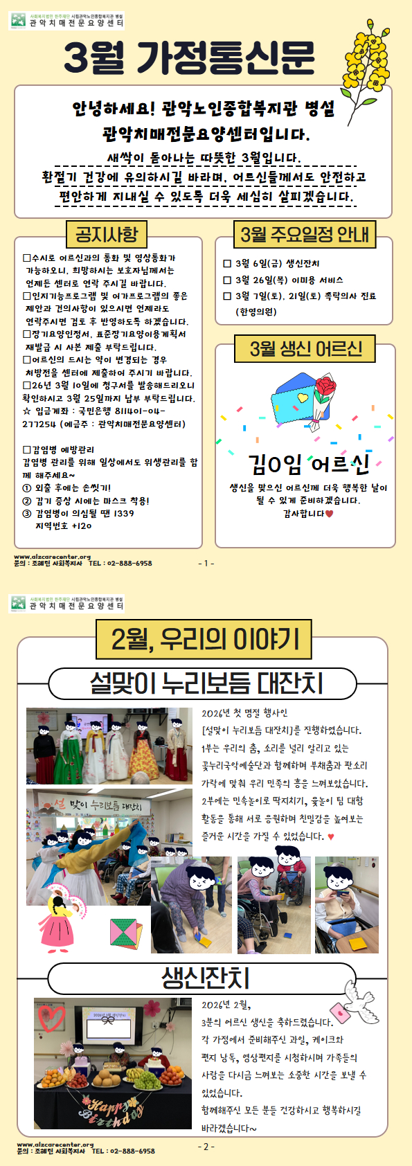 관악치매전문요양센터 2026년 3월 가정통신문